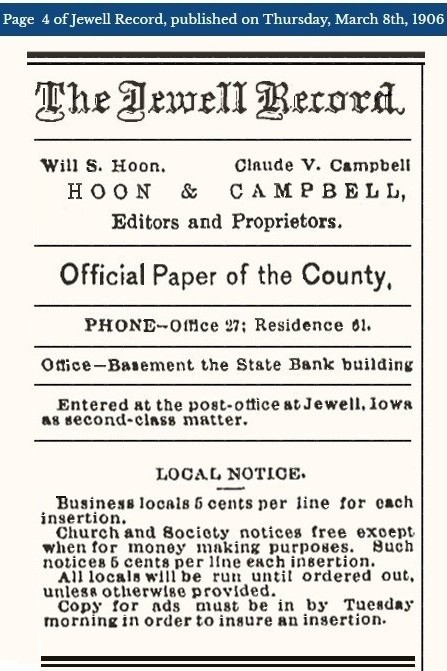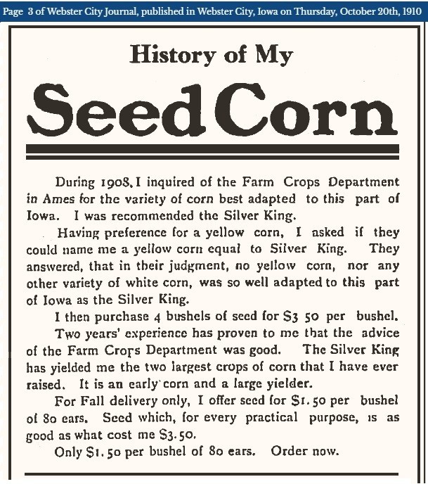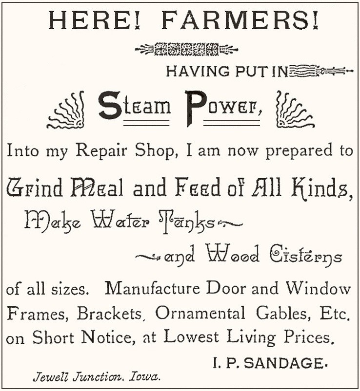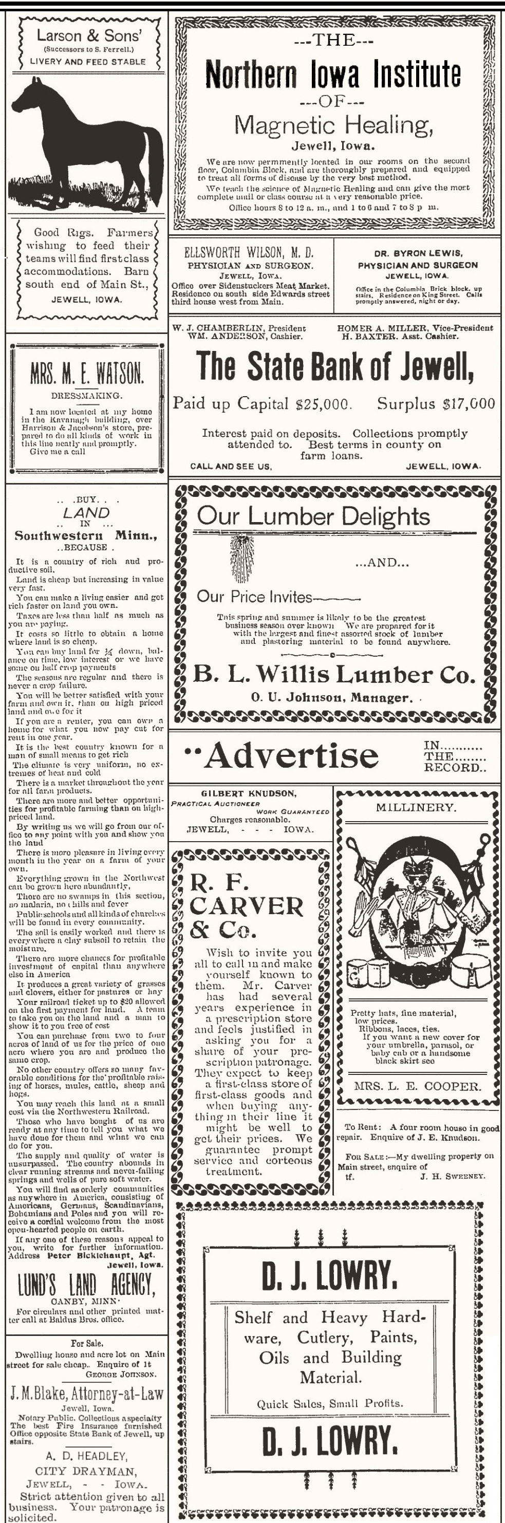 This next is a 1910 ad from Herman Gronbech, who farmed at the south edge of Jewell: