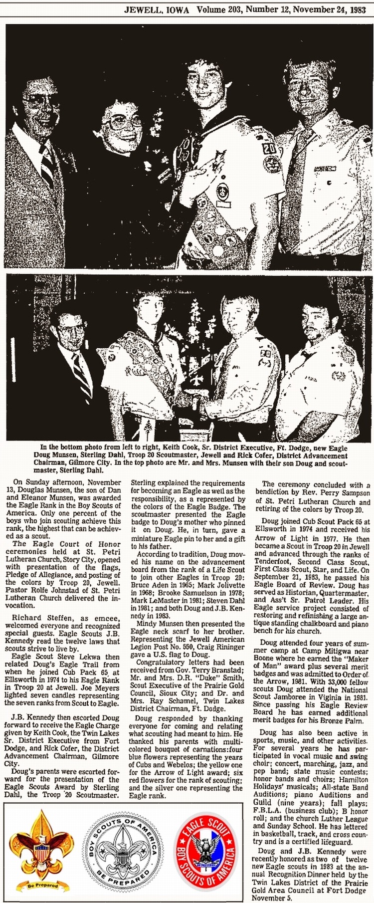 as their Scout Master, Rev. Norstad, and the men of the Scout Council named