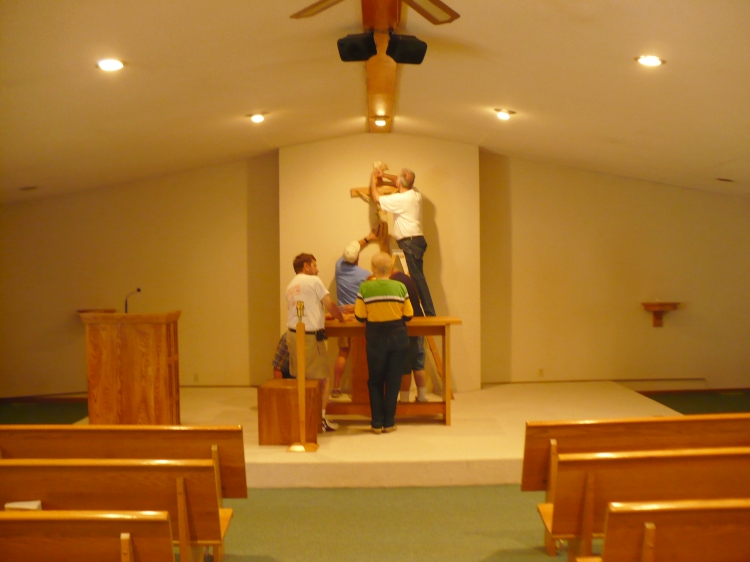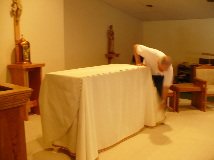 In 1935, the congregation bought the old Christian Church building which had closed because of the congregation's federation with the Methodist Church and Congregational Church. This church was an improvement for the members, as it was larger, had a basement, lights and water. There were 10 or 11 families at that time. May 31, 1936, Father William J. McGovern celebrated the first Mass in this newly remodeled church building.