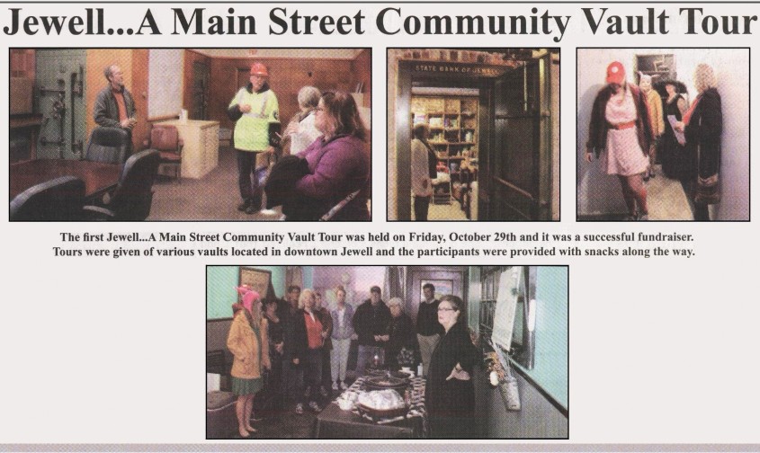 Jewell historian Dick Steffen, curator for Jewell Historical Society, worked with the folks of Jewell A Main Street Community (formerly JADE) to provide the community with a historic tour of four vaults located in downtown Jewell. Dick gave a historic tour of new and old vaults still located in downtown Jewell.