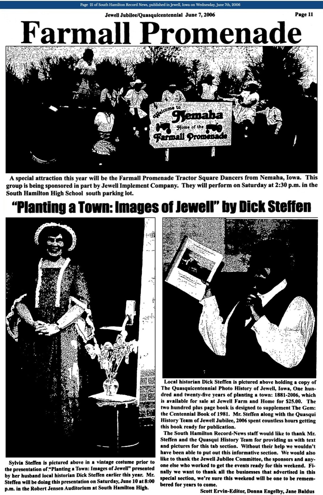 In the summer of 2006, Jewell held its annual Jewell Jubilee festival and also celebrated a special anniversary of the town's founding.
