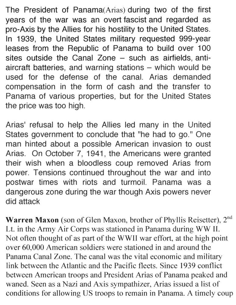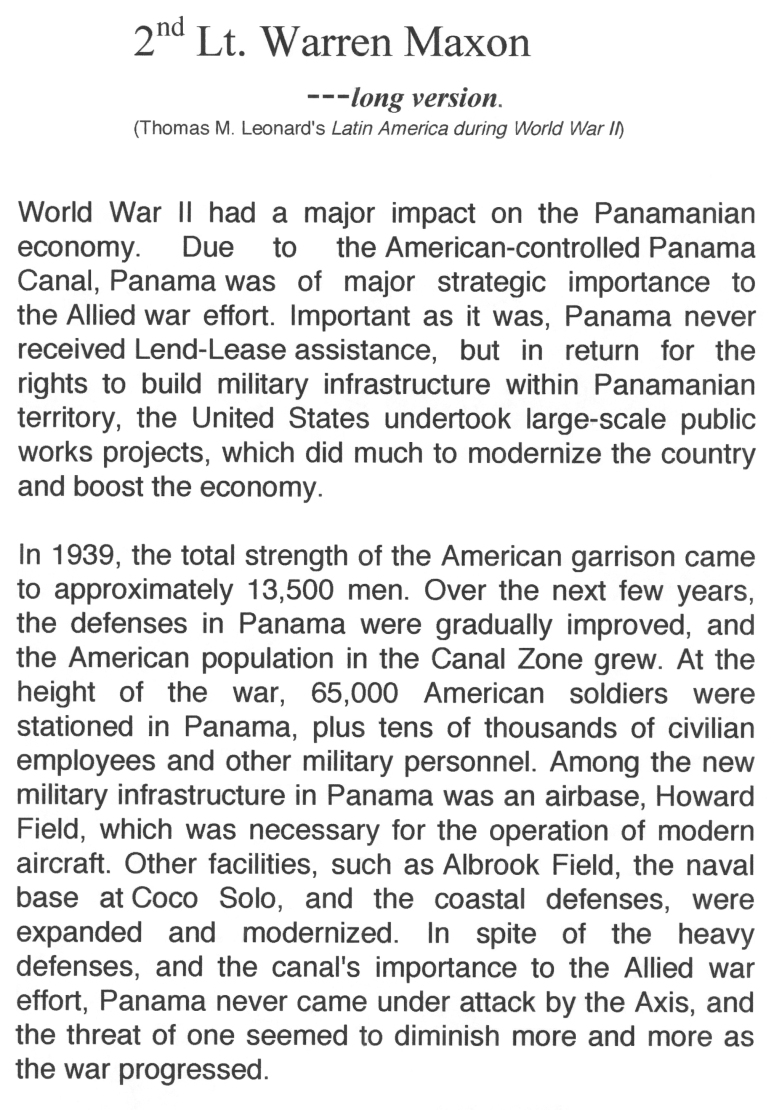 Army Air Corps was stationed in Panama during WW II. Panama,