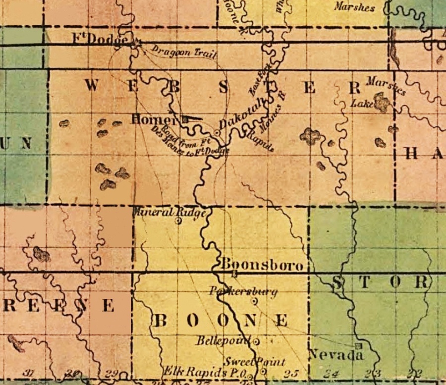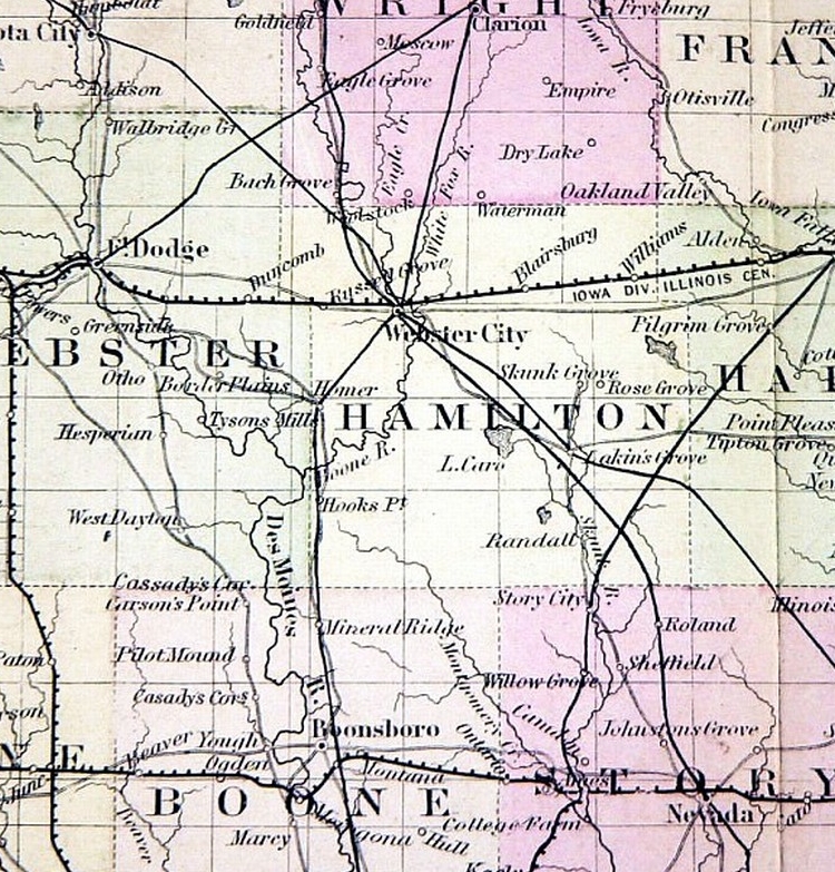 Only Webster City and Homer are recognised from today's viewpoint of this 1862 map.